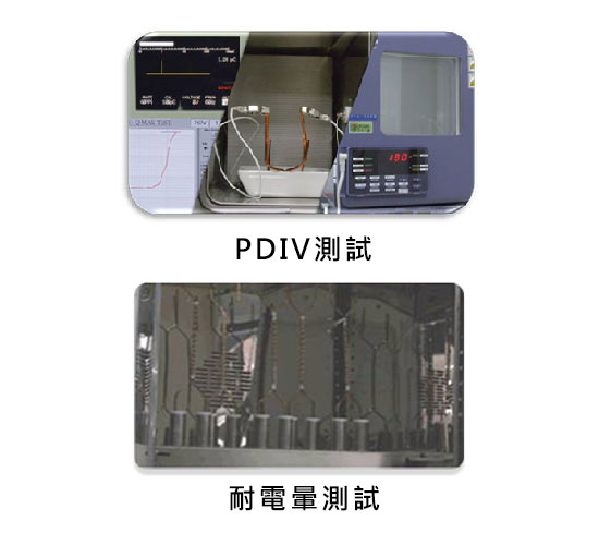 - ➤擁有最齊全之漆包平角(扁)線檢驗設備,如耐電暈、PDIV、ATF…等,可確保各項品質符合客戶需求。